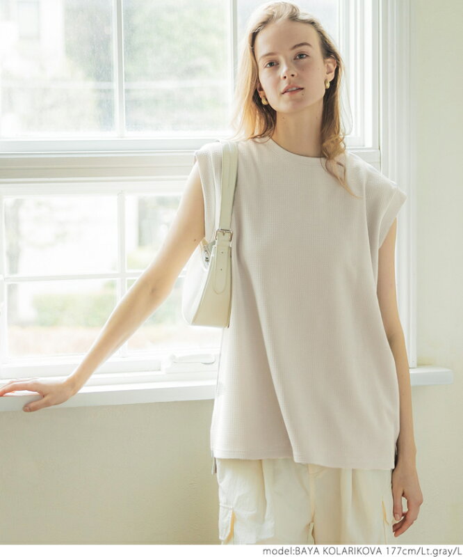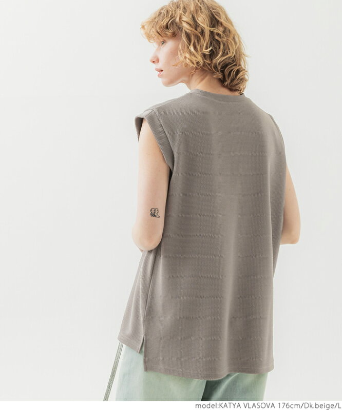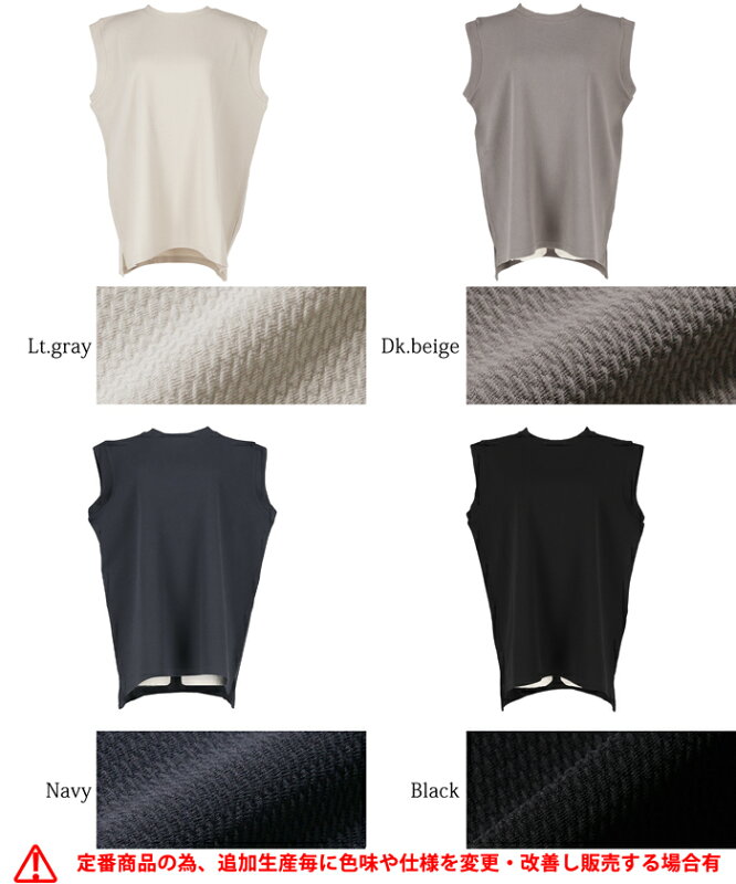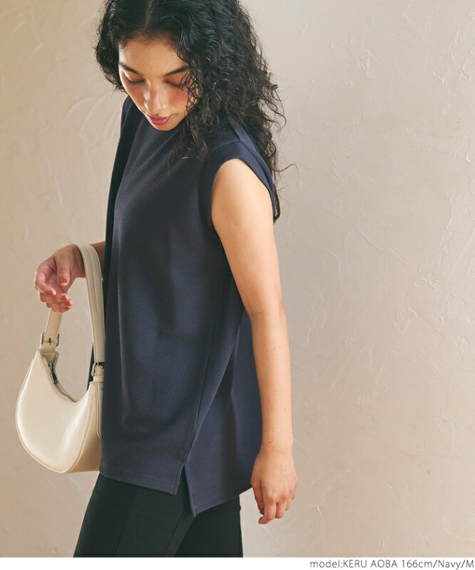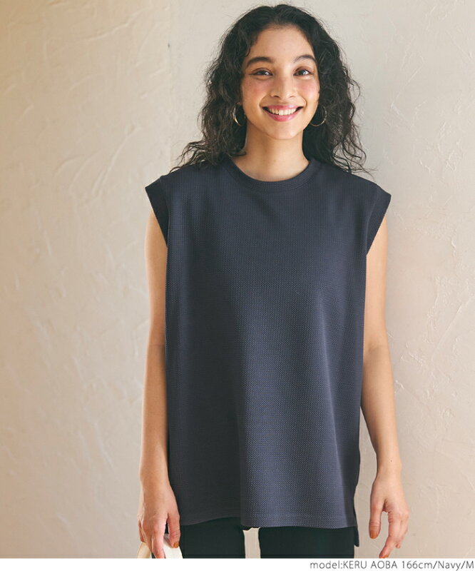 WEB限定セール★ カットソー レディ―ス エンボス加工 ミディアム丈 ノースリーブ サイドスリット テールカット イージーケア メール便不可 24ss