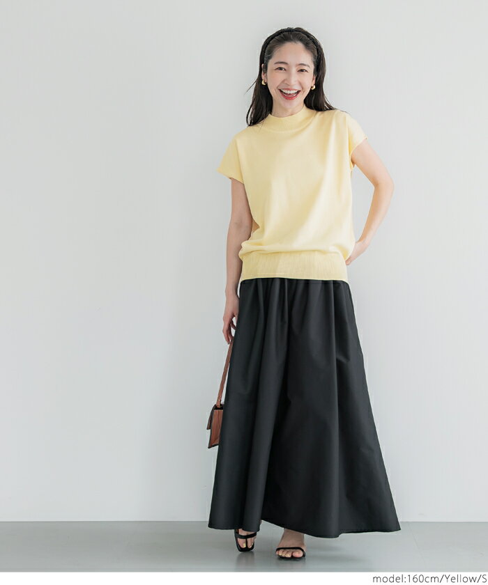 シャリ感レーヨンハイネックフレンチスリーブニット レディース メール便不可