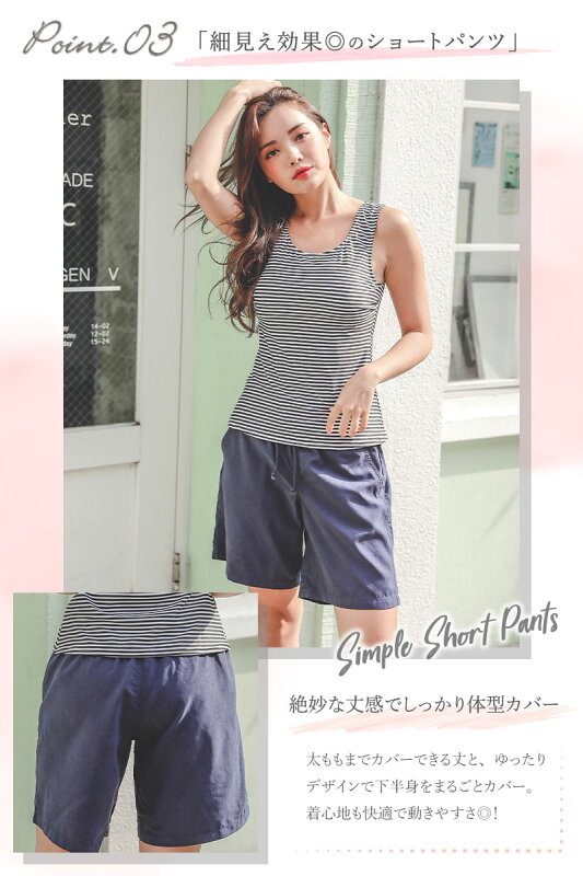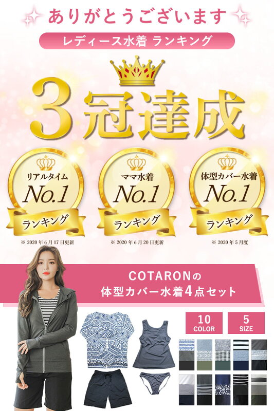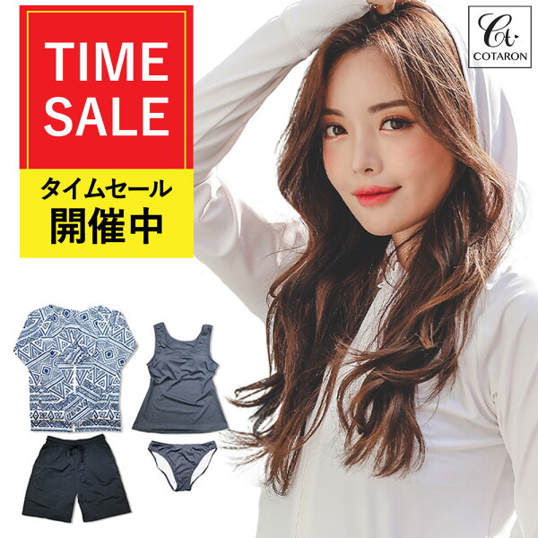 【P10倍!】高評価★4.53【日焼け対策UPF50+】水着 レディース ラッシュガード 体型カバー ママ水着 30代 40代 50代 大人 女子 セット水着 かわいい おしゃれ タンキニ カバーアップ ショートパンツ 4点セット 大きいサイズ COTARON コタロン【送料無料】