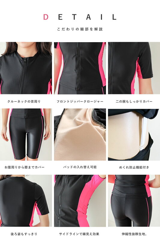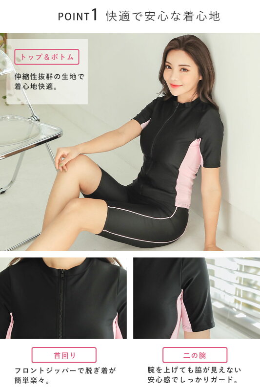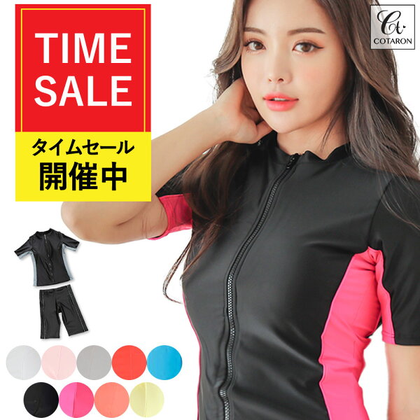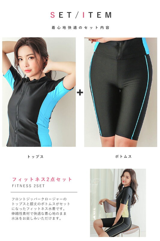 高評価★4.4 水着 レディース フィットネス水着 セパレート 水着 半袖 めくれ防止 ジム プール 競泳水着 フロントジッパー 2点セット 大きいサイズ ママ水着 30代 40代 50代 オトナ女子 かわいい 人気 COTARON コタロン 送料無料