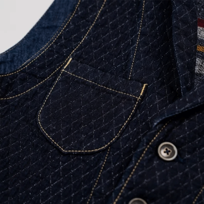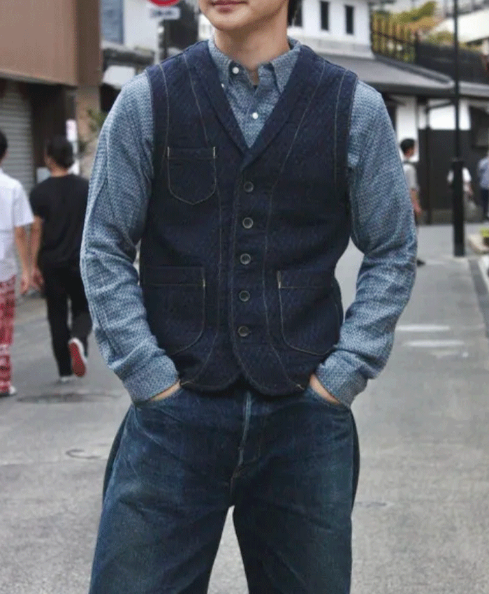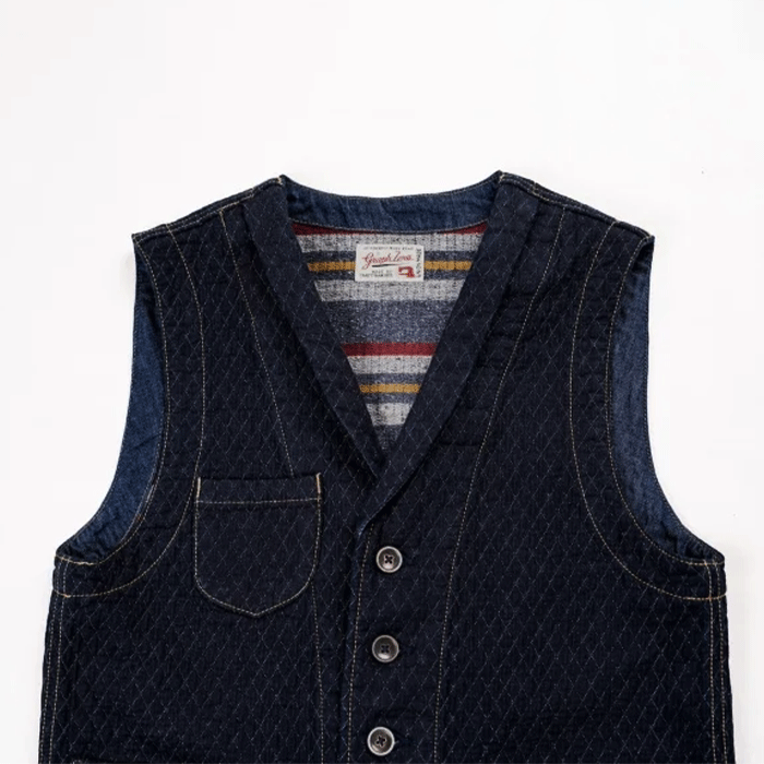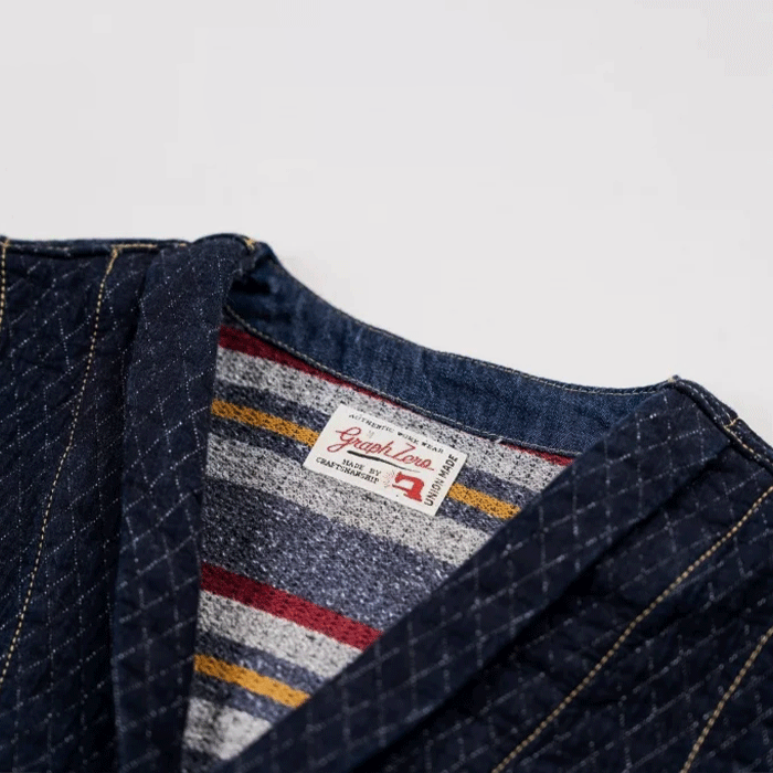 graphzero(グラフゼロ) ショールカラーベスト キルティング 二重織り デニム メンズ レディース 男女兼用 [GZ-SLVT-0608QT] 岡山 倉敷 児島 ジーンズ デニム ブランド ヴィンテージデザイン S M L XL XXL インディゴ ワーク 春 秋 冬 おしゃれ 日本製 国産