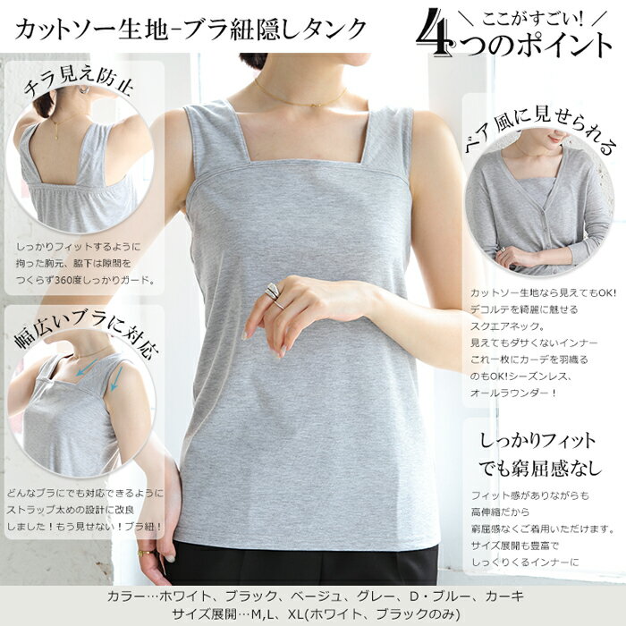 【24H限定:1枚990円!3枚購入&クーポン利用で】【楽天年間No.1】 ブラ紐隠し ブラ紐隠しインナー タンクトップ 脇汗 インナー 抗菌防臭 接触冷感 汗取りインナー 脇汗ガード レディーストップス レイヤード ブラ紐隠せる 吸収 360度ガード【ブラ紐隠し】 キャミソール