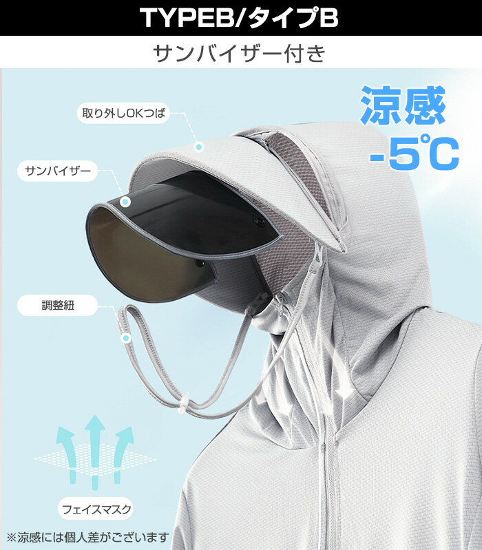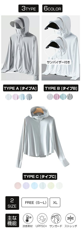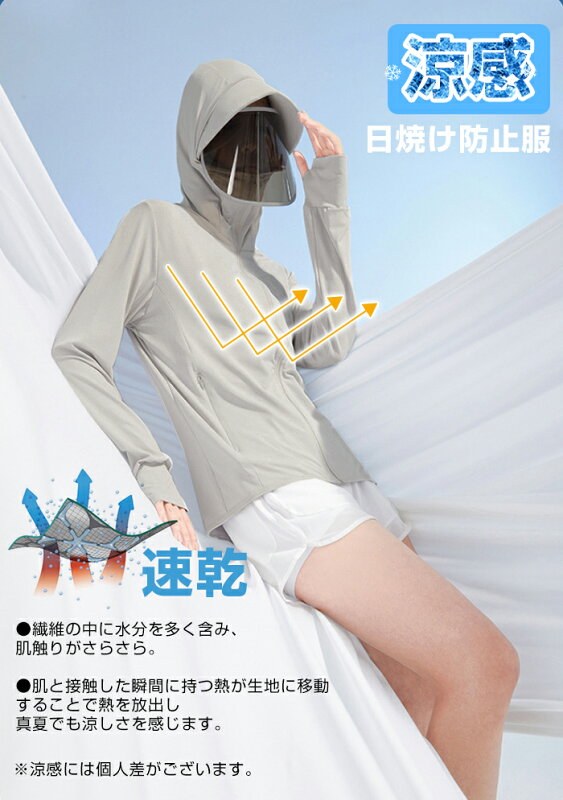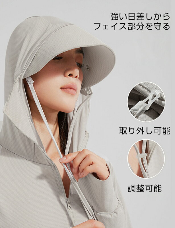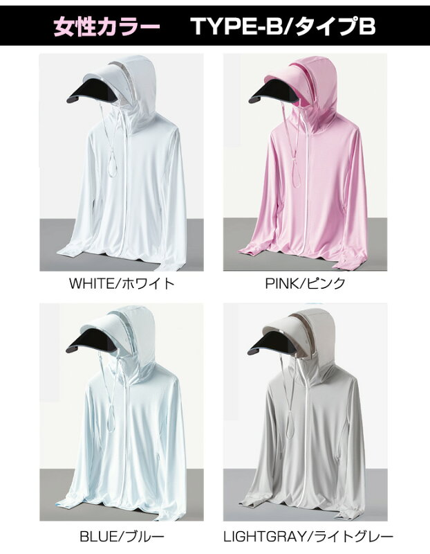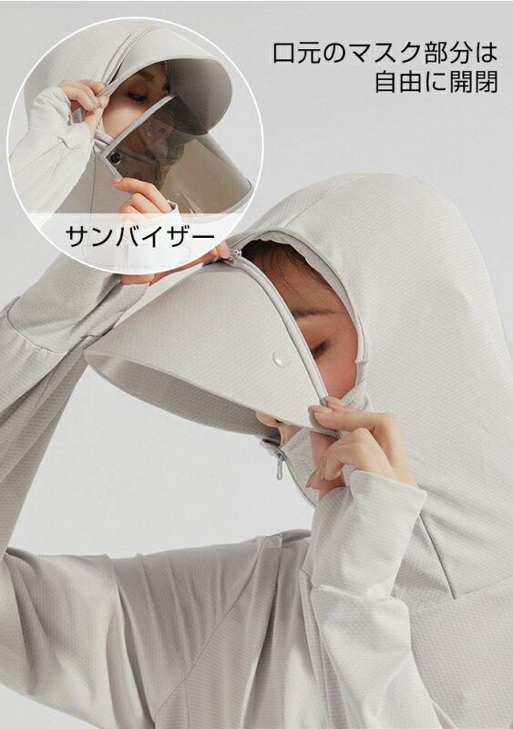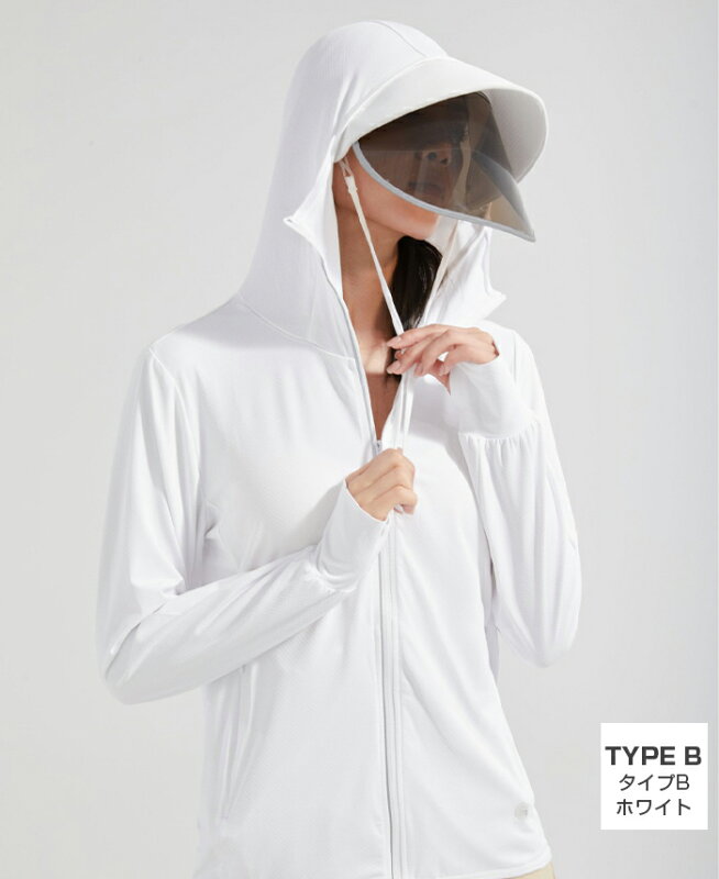 P5倍 【24H限定 最安1枚1,199円~!2枚購入&クーポン利用で】UVパーカー UV UPF50+ UVカット ラッシュガード レディース 長袖 薄手 日焼け止め スポーツ ジム ヨガ マスク つば バイザー アームカバー 帽子 冷感 接触冷感【完全防備UVカットパーカー】タイプCが最安です