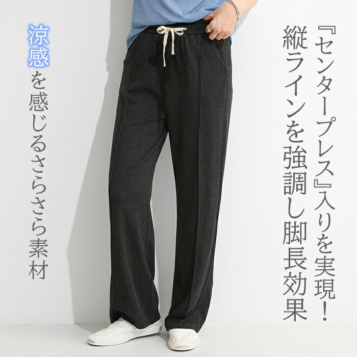 【24H限定:1枚最安1,490円~!2枚購入クーポンで】【楽天一位】 さらてろ 春 ワイドパンツ ポケット付き レディース ロング ワンマイルウェア 低身長 高身長 ワイド ゆったり 大きいサイズ 小さい センタープレス【 さらてろピンタックセンタープレスワイドパンツ 】