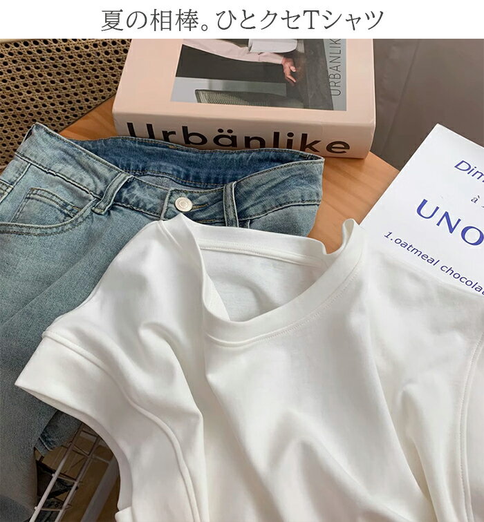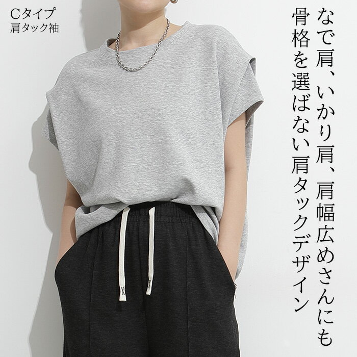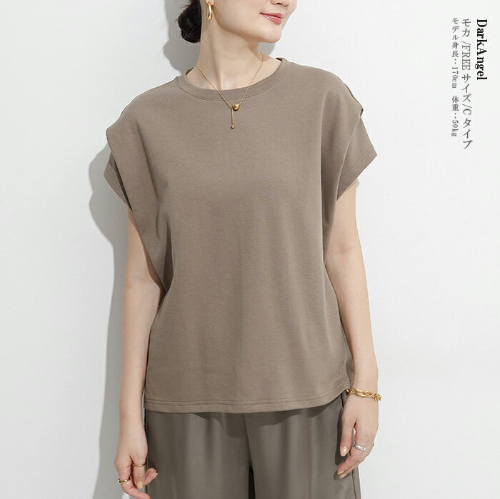 半額!【24H限定:1,245円!2点購入クーポンで】 Tシャツ レディース 着痩せ 華奢見え 半袖 フレンチスリーブ 無地 カジュアル シンプル トレンド 二の腕カバー Uネック ラウンドネック トップス ゆったり オーバーサイズ【 脱・普通のTシャツ 】 ダークエンジェル