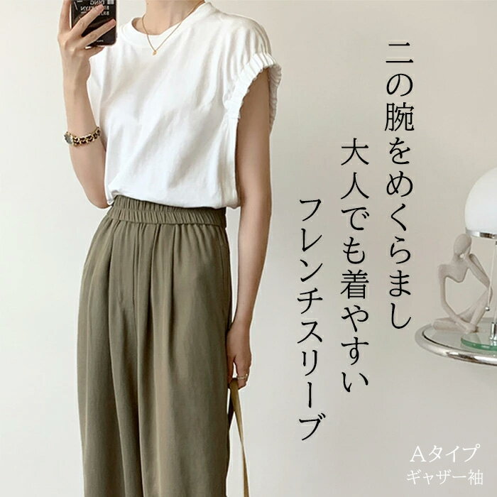T シャツの袖口のギャザーが可愛らしくて、平凡な T シャツよりずっと おしゃれ感が増すと思いました
