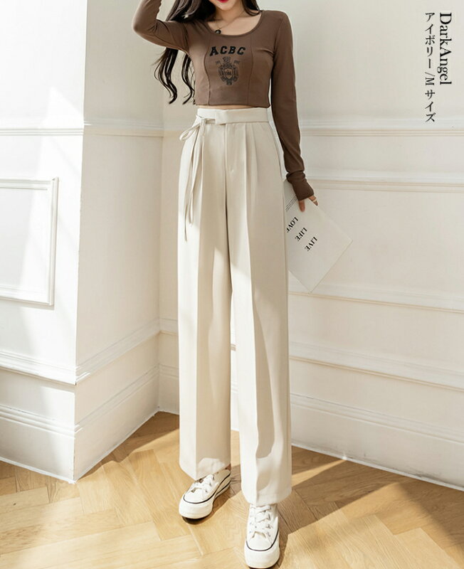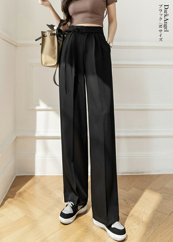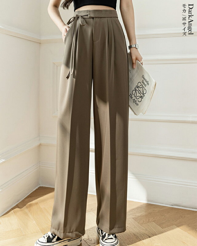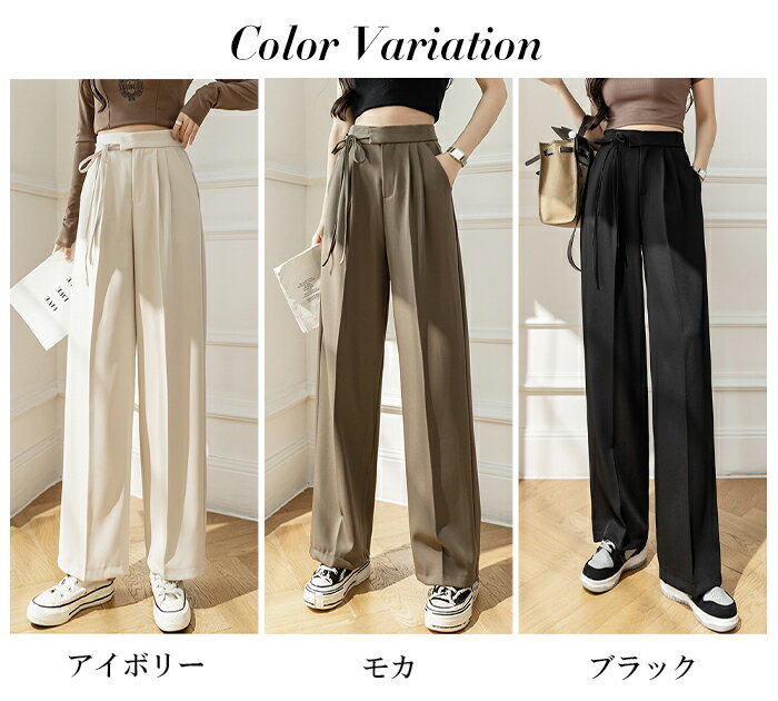 20%OFF!【24H限定:2,392円!クーポンで】『感動』美脚見え サイドリボン ウエストリボン ワイドパンツ レディース タック タック入り ゆったり S M L XL 2XL オフィス カジュアル ボトムス 春 きれいめ【 サイドリボンタックワイドパンツ 】