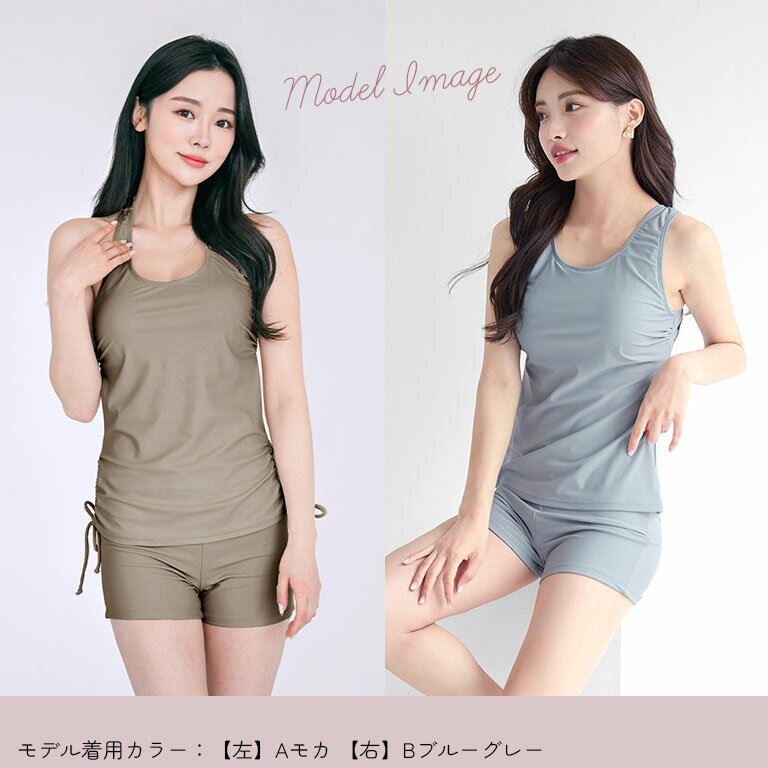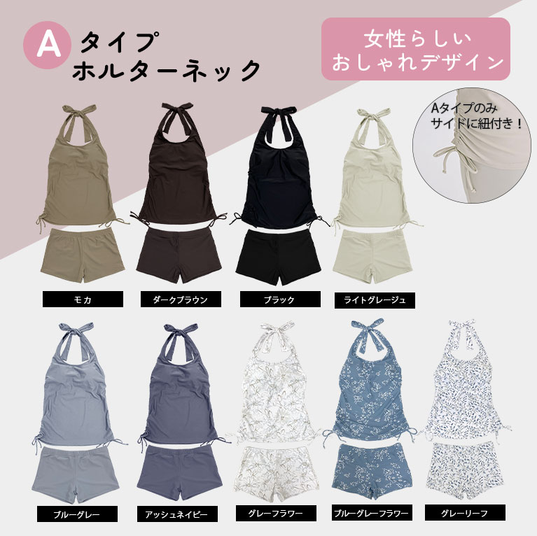 水着 レディース 体型カバー 上下セット ブラトップ ブラパッド付き タンクトップ タンキニ ショーツ ホルターネック 無地 おしゃれ かわいい 可愛い くすみカラー プール ベーシック シンプル 旅行 リゾート【送料無料】ts007