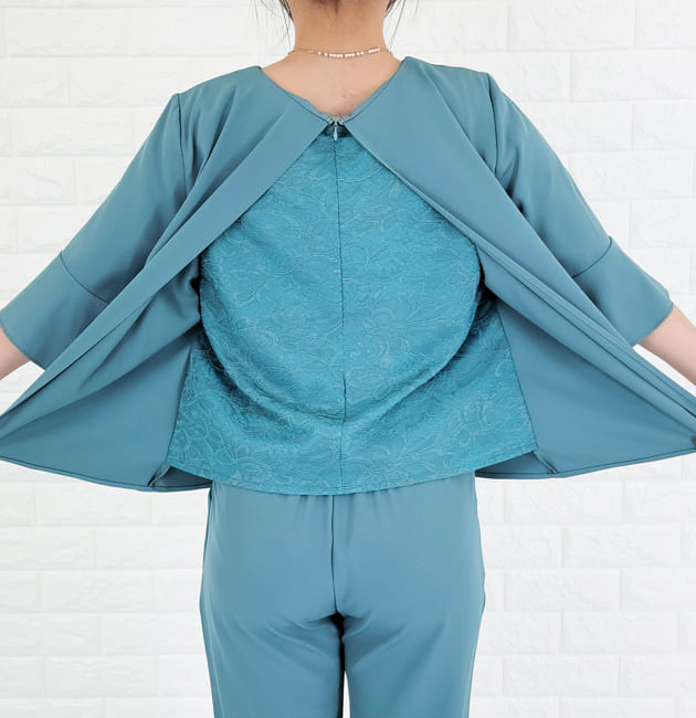五分袖 無地 パンツセットアップ ブラック ダークグレー ネイビー ブルー パンツドレス 結婚式 二次会 披露宴 お呼ばれ 上下セット 2点セット パーティードレス フレア袖 20代 30代 40代