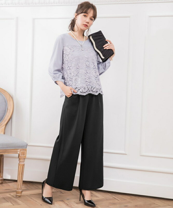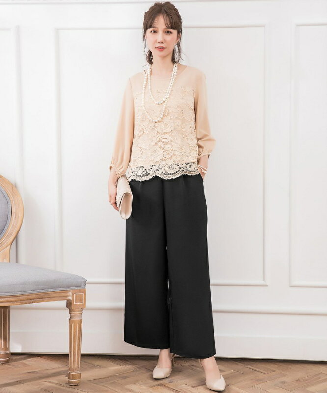 パーティードレス パンツ 結婚式 パンツドレス 上下セット パンツスタイル [企画]大きいサイズ ママ スーツ セット アップ 体型カバー 長袖 袖あり レディース お呼ばれ 他と被らない フォーマル 秋冬 大人 cy88131