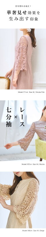 [半額SALE]パーティードレス 結婚式 ワンピース ミモレ丈 七分袖 大きいサイズ 体型カバー パーティー お呼ばれ ドレス ミモレ 膝下 レース シンプル きれいめ フォーマル ダマスク ママ 母 夏 秋冬 大人 可愛い cy88218