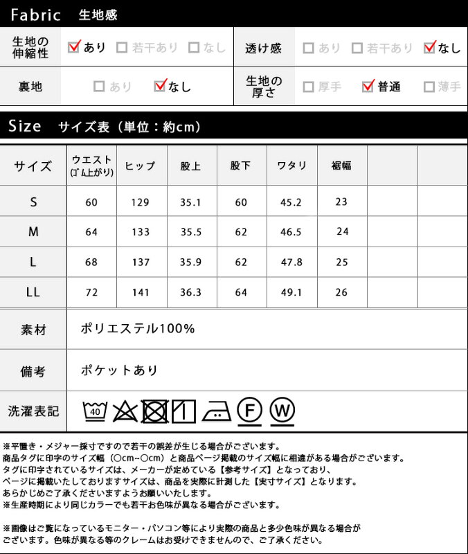 160cm、Mサイズが売り切れだったのでLサイズにしてみたら、やっぱりひと回り大きくて、ウエスト1回折って履くか、裾直しするかでした。。。でも形は可愛いのです!