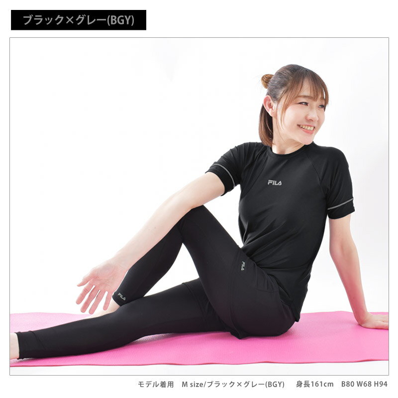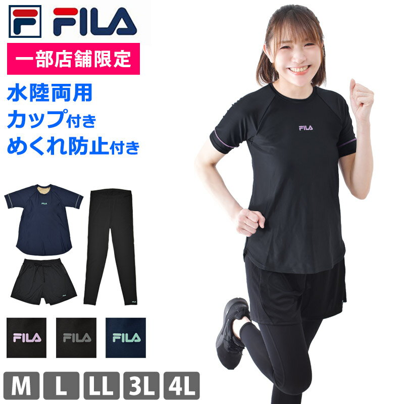 送料無料 スポーツウェア レディース FILA フィラ 2WAY 上下 3点セット カップ付き 半袖 ブラトップ ショートパンツ レギンス セット 水陸両用 水着 ホットヨガ フィットネス水着 大きいサイズ ランニングウェア ヨガウェア 体型カバー ママ 水着 314022-T M L LL 3L 4L