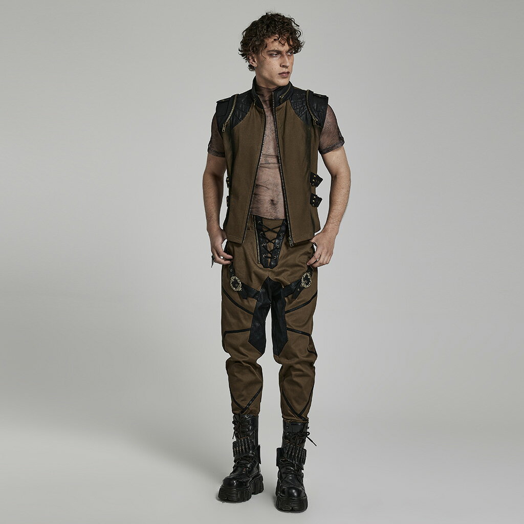 glareshop グレアショップ「M.S-M.5XL」KX521-C■パンク ツイル ハイネック ジッパー ビジュアルセンターショルダー 肩デザインポイント ベスト ブラウン メンズ | パンクロック 個性的 サイバーパンク ミリタリー 軍服 コスプレ ステージ 衣装 服 [PUNK RAVE] Punk Vest