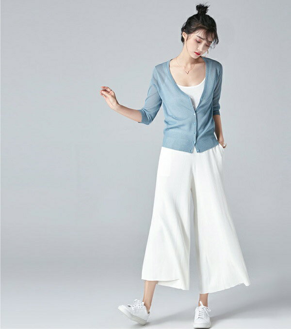 カーディガン Vネック ゆったり 軽い 薄手 ニット トップス 韓国 七分袖 レディース 春 夏 秋 ギフト プレゼント グレー ホワイト ブルー ブラック S/M/L/XL/XXL dd054f4f4d4