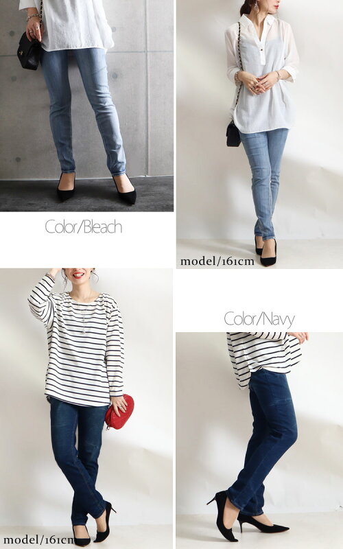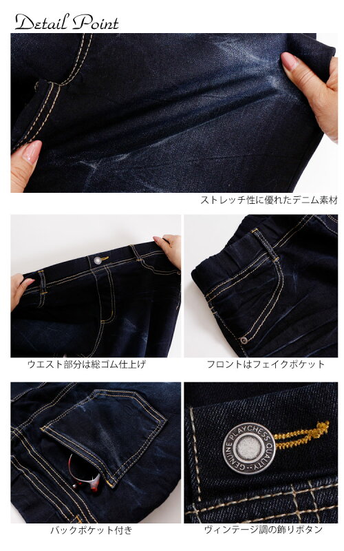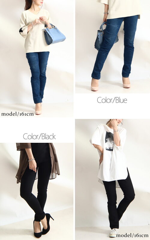 写真のすらっとしたモデルさんみたいな体型の方なら、多分余裕があってデニムっぽく着られるかと思います。