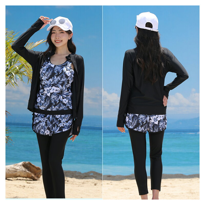 【スーパーセール限定価格】水着 レディース 体型カバー セパレート 長袖ラッシュガード 5点上下セット フィットネス水着 大きいサイズ タンキニ ショートパンツ レギンス かわいい ママ水着 女性ミセス 20代 30代 40代 50代 かわいい 露出控えめ 脚 お腹