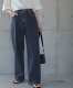 同じようなハイウエストのワイドストレートは他にも所有しているのですが、しっかりしたデニムだと長時間座っているとウエストが固くて食い込んでくるのでこの隠しゴムのウエストに惹かれていました。