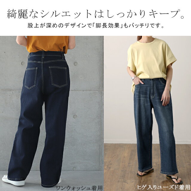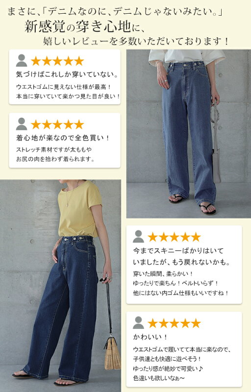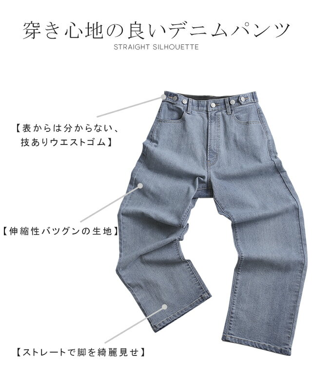 「 新 感 覚 」穿いていて疲れない ■一部7月上旬入荷 デニム パンツ デニムパンツ レディース ワイドパンツ ワイド 大きいサイズ ジーンズ ジーパン ボトム 体型カバー ボトムス ストレート ゆったり ハイウエスト ゴム ストレッチ ハイライズ 春 夏 小さいサイズ HUG.U