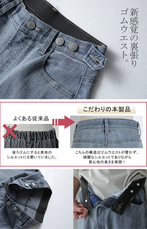 ウエストゴムは締まるというよりは、ウエスト部分のストレッチも強めなデニムという認識の方がいいと思います。