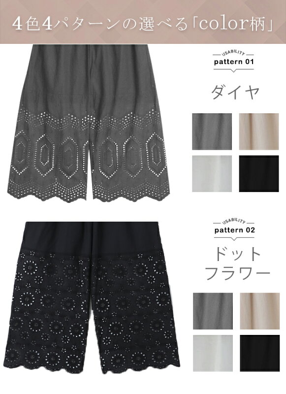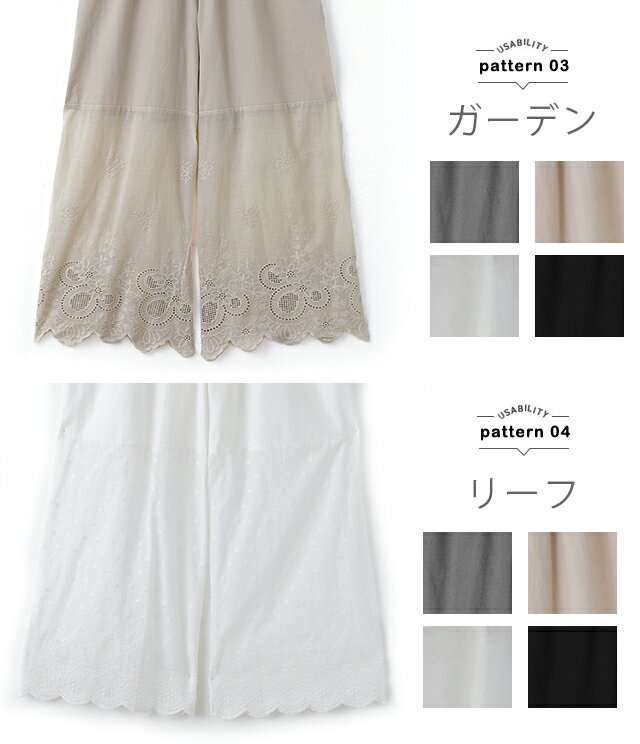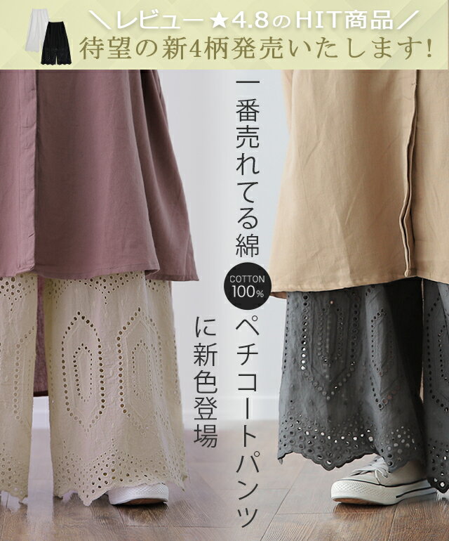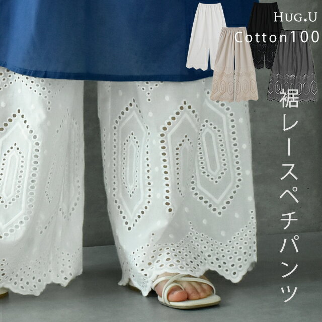 超便利「ワンピに重ねる 裾パンツ 」 ペチパンツ ■一部7月中旬入荷 レディース パンツ ペチコート ボトムス インナー レイヤード 重ね着 レース 綿 体型カバー ロング マキシ 下着 ウエストゴム ワイド 黒 大きいサイズ 春 夏 涼しい HUG.U コットン ワイドパンツ