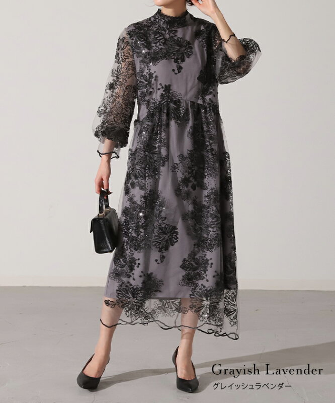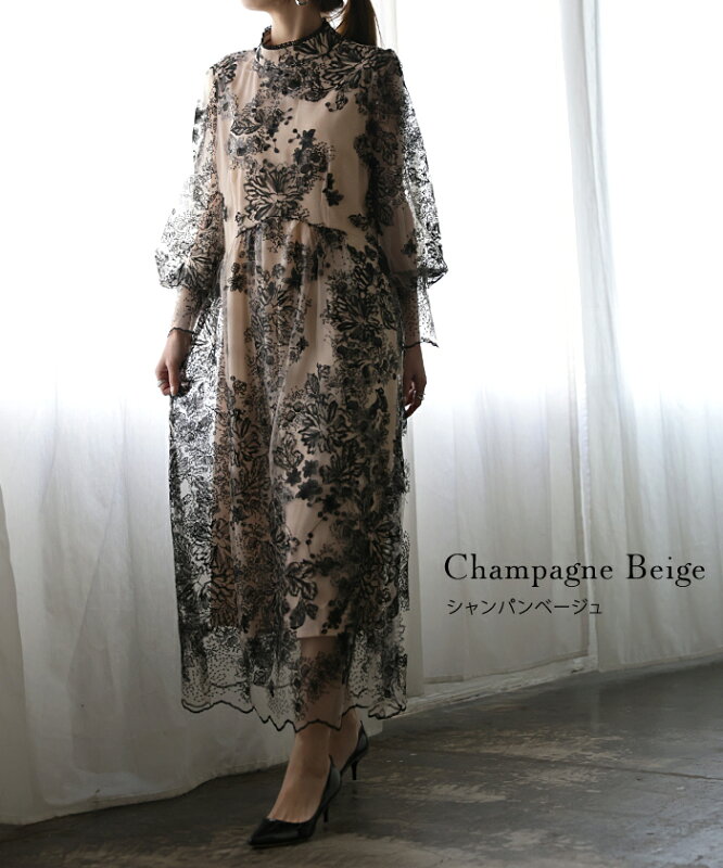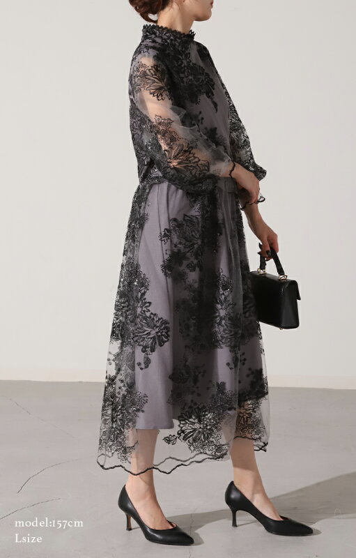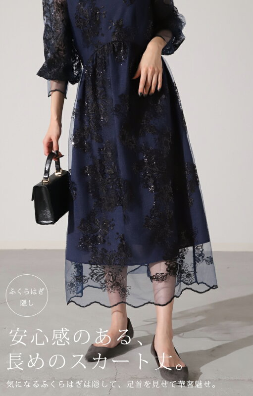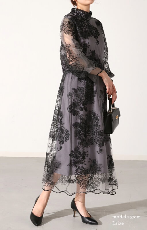 袖あり 『 これにしてよかった。』 結婚式 ワンピース ■一部6月下旬入荷 オケージョン ロングワンピース ロング 体型カバー レディース ワンピ 長袖 パーティー きれいめ ハイネック レース フォーマル ドレス パーティードレス 二次会 大きいサイズ 黒 春 夏 HUG.U
