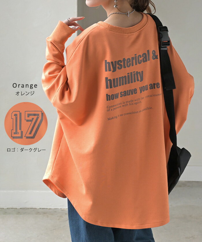 早割クーポン有 『 選べる3ロゴ 』 スウェット ロゴ ■一部2月下旬入荷 レディース トップス ロング トレーナー オーバー プルオーバー 長袖 ドルマン クルーネック オーバーサイズ ゆったり 体型カバー 大きいサイズ お尻が隠れる カジュアル 黒 ベージュ 春 冬 HUG.U