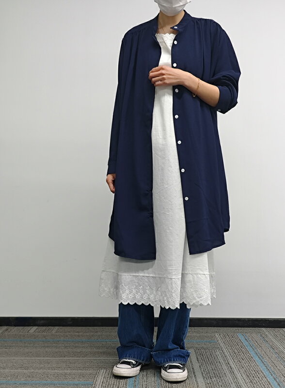 落ち着いた色でゆったり着られるので暑い日に活躍しそうです