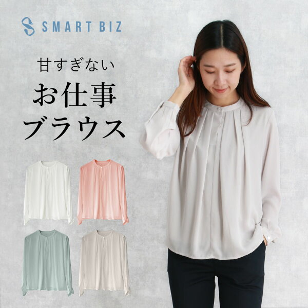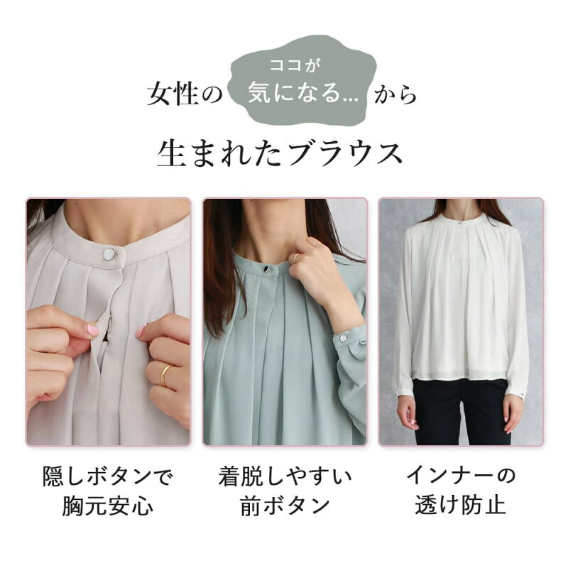 【甘すぎないお仕事ブラウス】胸元の安心感◎ \返品交換無料/ ブラウス オフィス ノーアイロン レディース ビジネス 長袖 スーツ 透けない 仕事着 オフィスカジュアル クリーム ブルー グリーン グレージュ ブラック 白 黒 青 入学 入園 卒業 卒園 春 [M便 1/1]