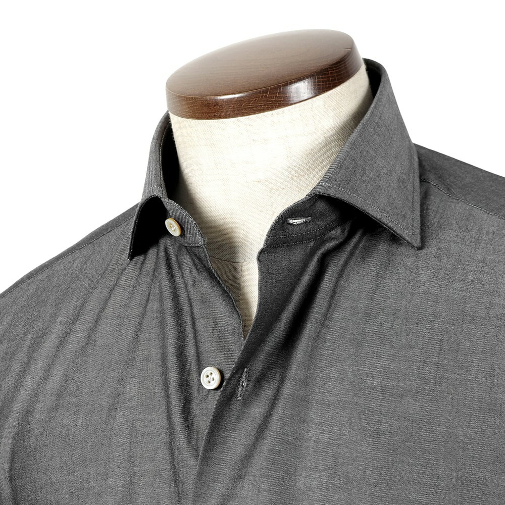 【ポイント10倍】 マリアサンタンジェロ Maria Santangelo / コットンカラーツイルワイドカラーシャツ「MARCO」(ダークグレー)/ オールシーズン メンズ イタリア ナポリ 手縫い 長袖 カジュアルシャツ