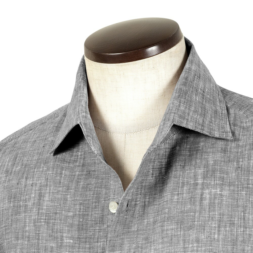 【ポイント10倍】 マリアサンタンジェロ Maria Santangelo / Vittoriaリネンポプリンワンピースカラープルオーバーシャツ「POLO JP」(グレー)/ 春夏 メンズ イタリア ナポリ リネンシャツ 麻シャツ ヴィットーリア