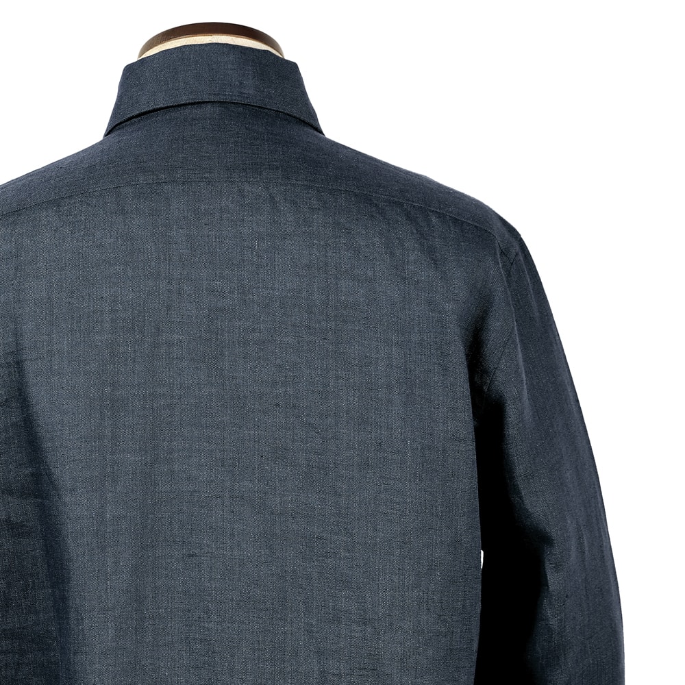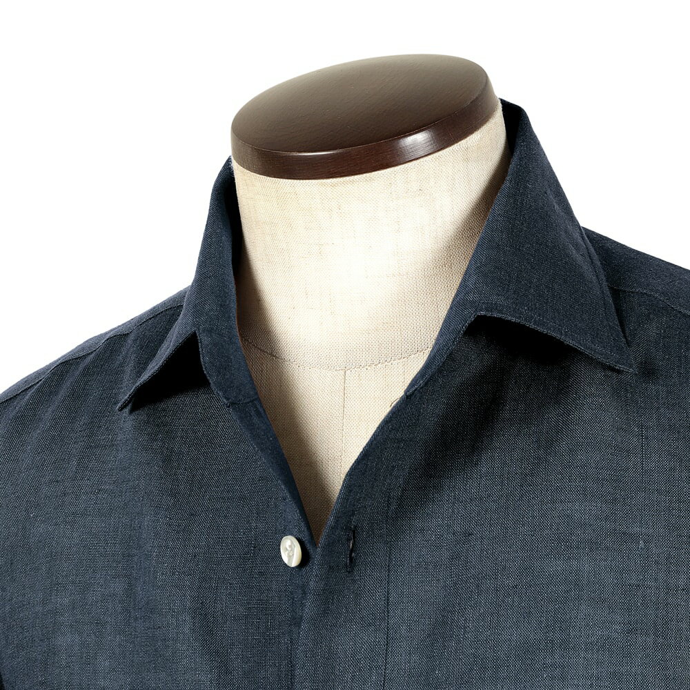 【ポイント10倍】 マリアサンタンジェロ Maria Santangelo / Vittoriaリネンポプリンワンピースカラープルオーバーシャツ「POLO JP」(ネイビー)/ 春夏 メンズ イタリア ナポリ リネンシャツ 麻シャツ ヴィットーリア