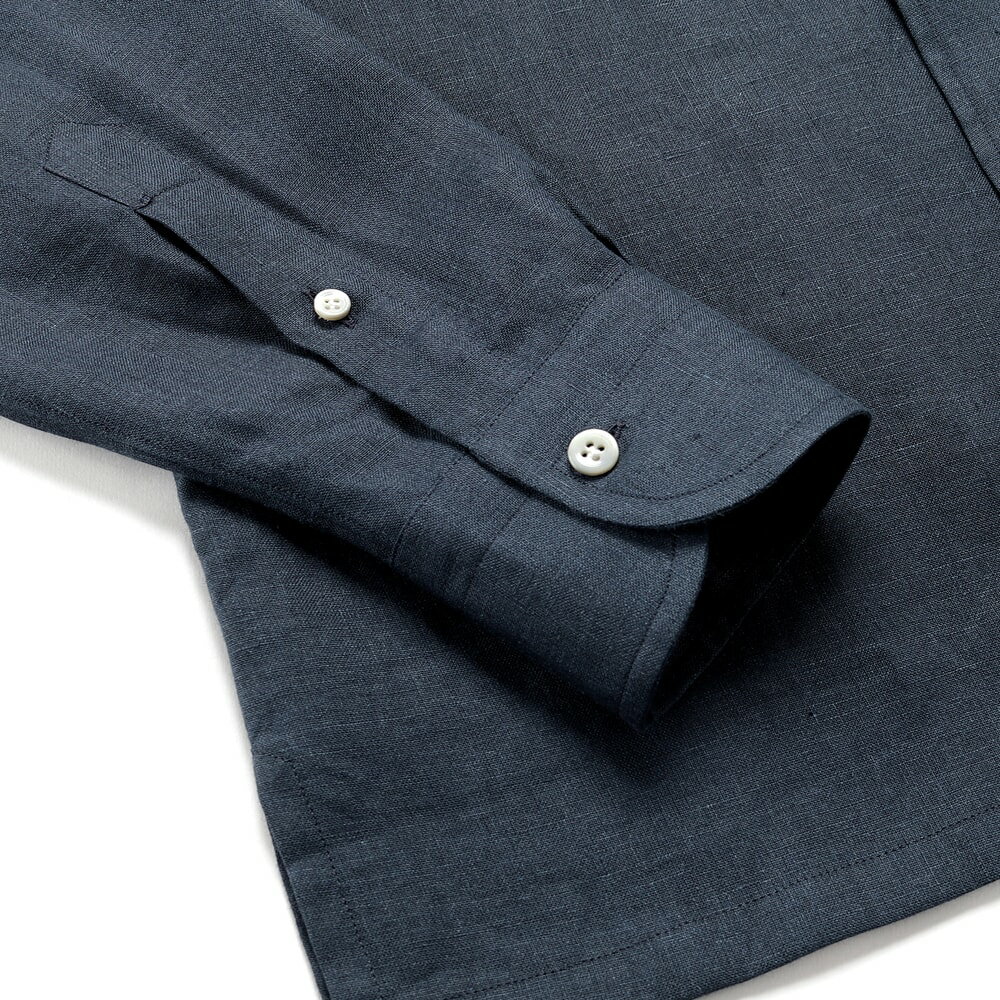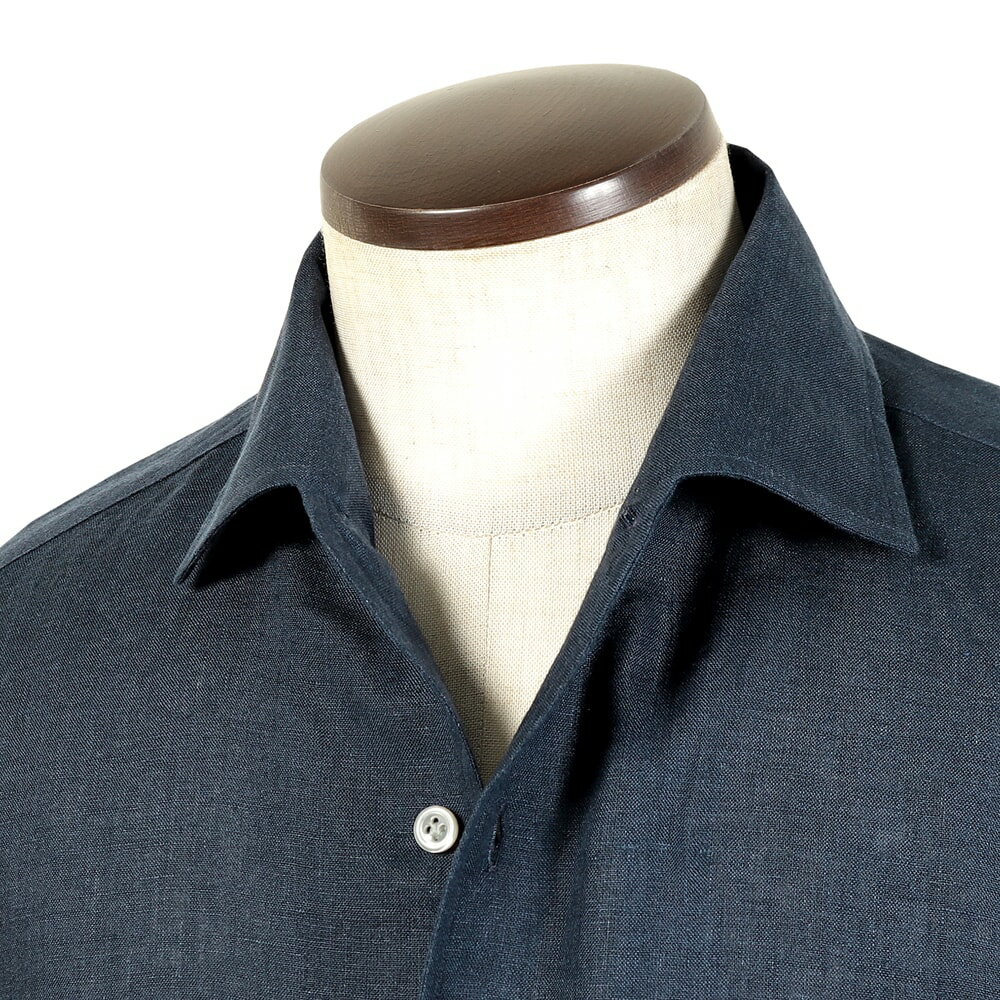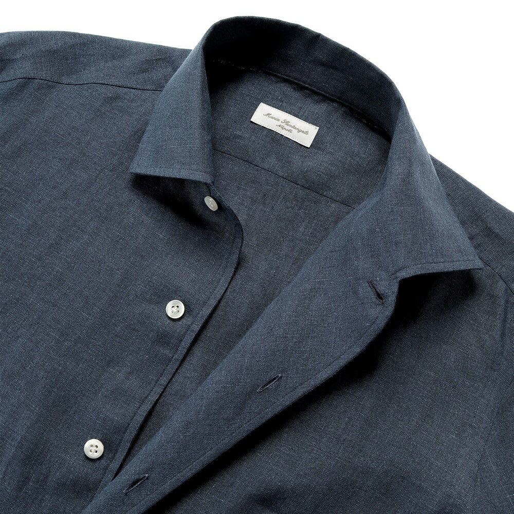 【ポイント10倍】 マリアサンタンジェロ Maria Santangelo / 当店別注Vittoriaリネンポプリンイタリアンカラーシャツ「MARCELLO」(ネイビー)/ 春夏 メンズ イタリア ナポリ リネンシャツ 麻シャツ ヴィットーリア