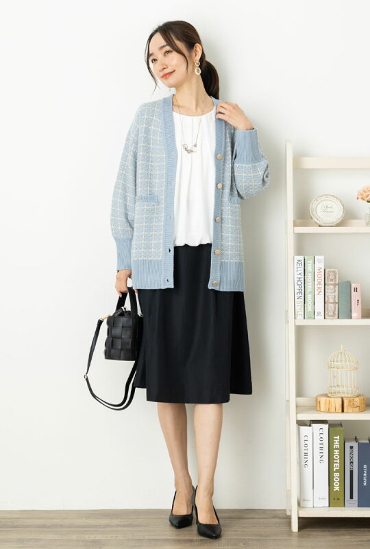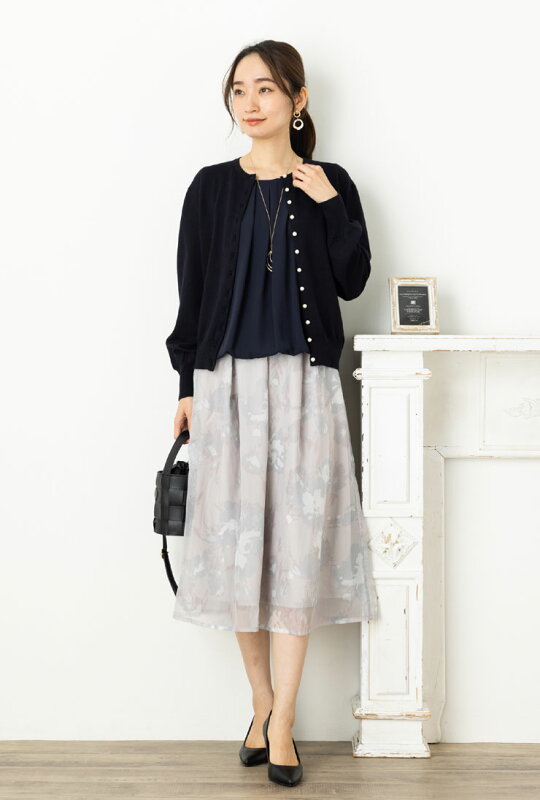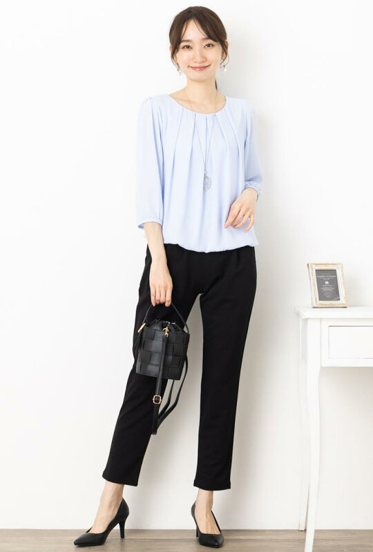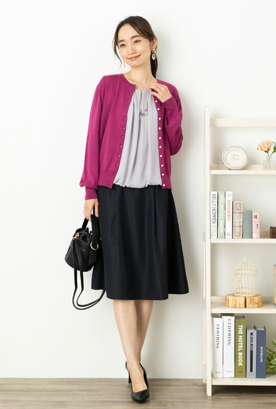 スカートでもパンツでも、ジャケットもどんなタイプのものでも合うしパールのネックレスとかすると高級感もあります。