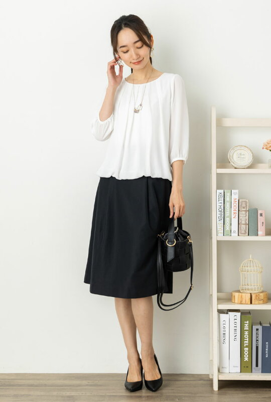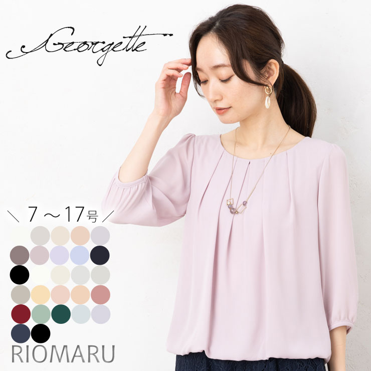 ブラウス フォーマル セレモニー レディース ◆【メール便 送料無料06】【7〜17号】シフォン ジョーゼット 裏天竺 フロントタックバルーン 七分袖ブラウス [フォーマル スーツ インナー オフィス カジュアル 入学式 入園 卒業 卒園 七五三 白 ママ ]【エコ包装】[bl][lf]