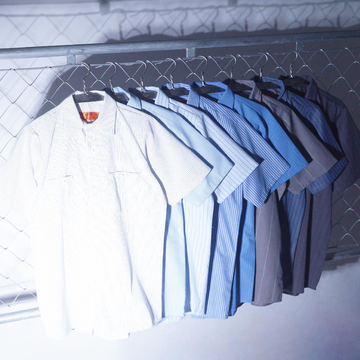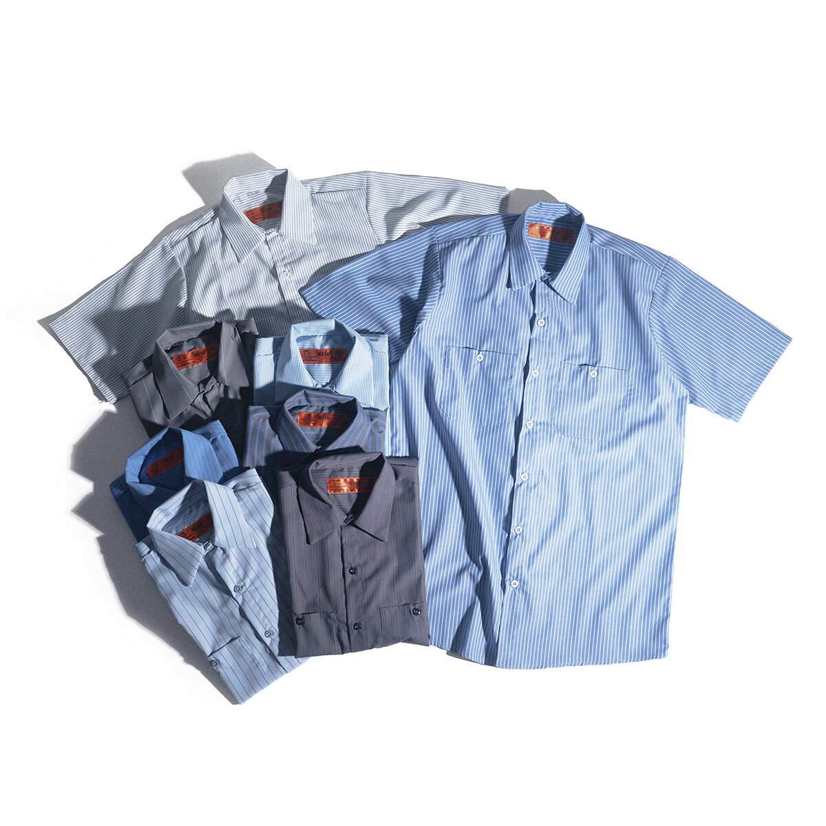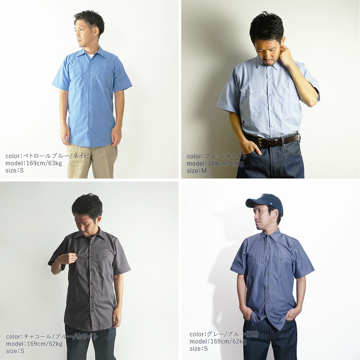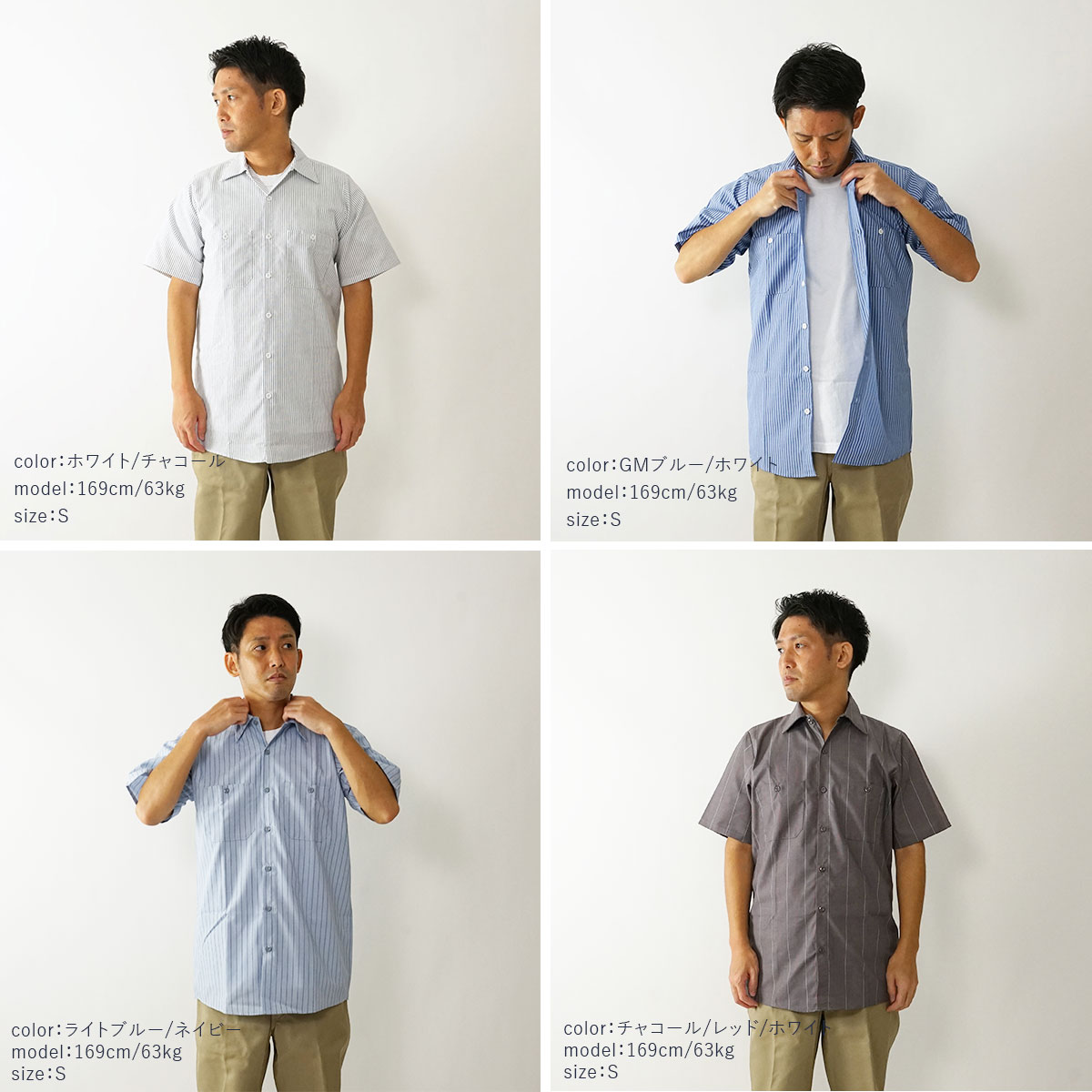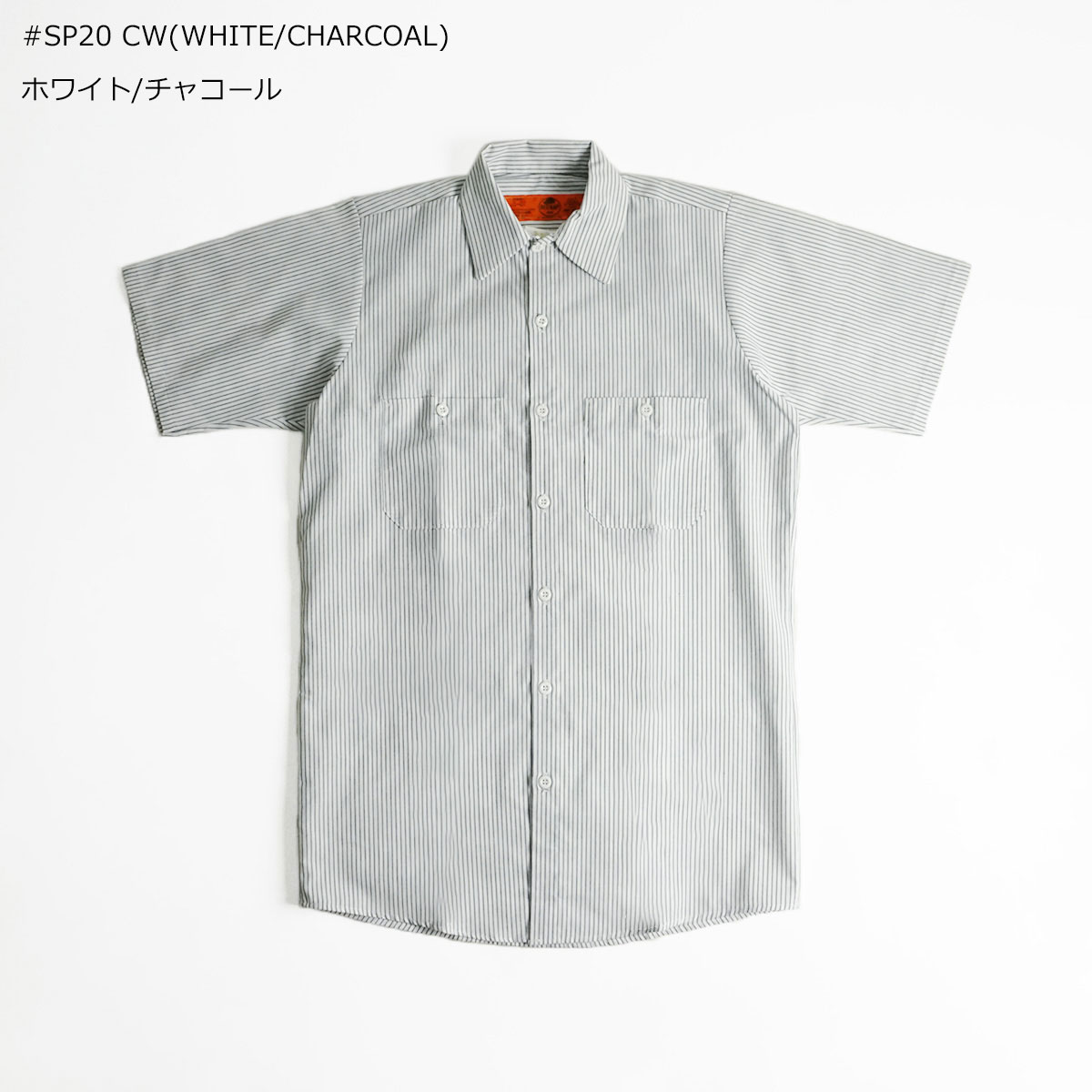 レッドキャップ REDKAP #SL20/#SP20/#SB22/#SP24 半袖 ストライプ ワークシャツ INDUSTRIAL STRIPE S/S WORK SHIRT | メンズ ワークブランド シワになりにくい、汚れにくい素材 ホワイト グリーン チャコール ブルー ネイビー レッド ブラウン 白 青 グレー