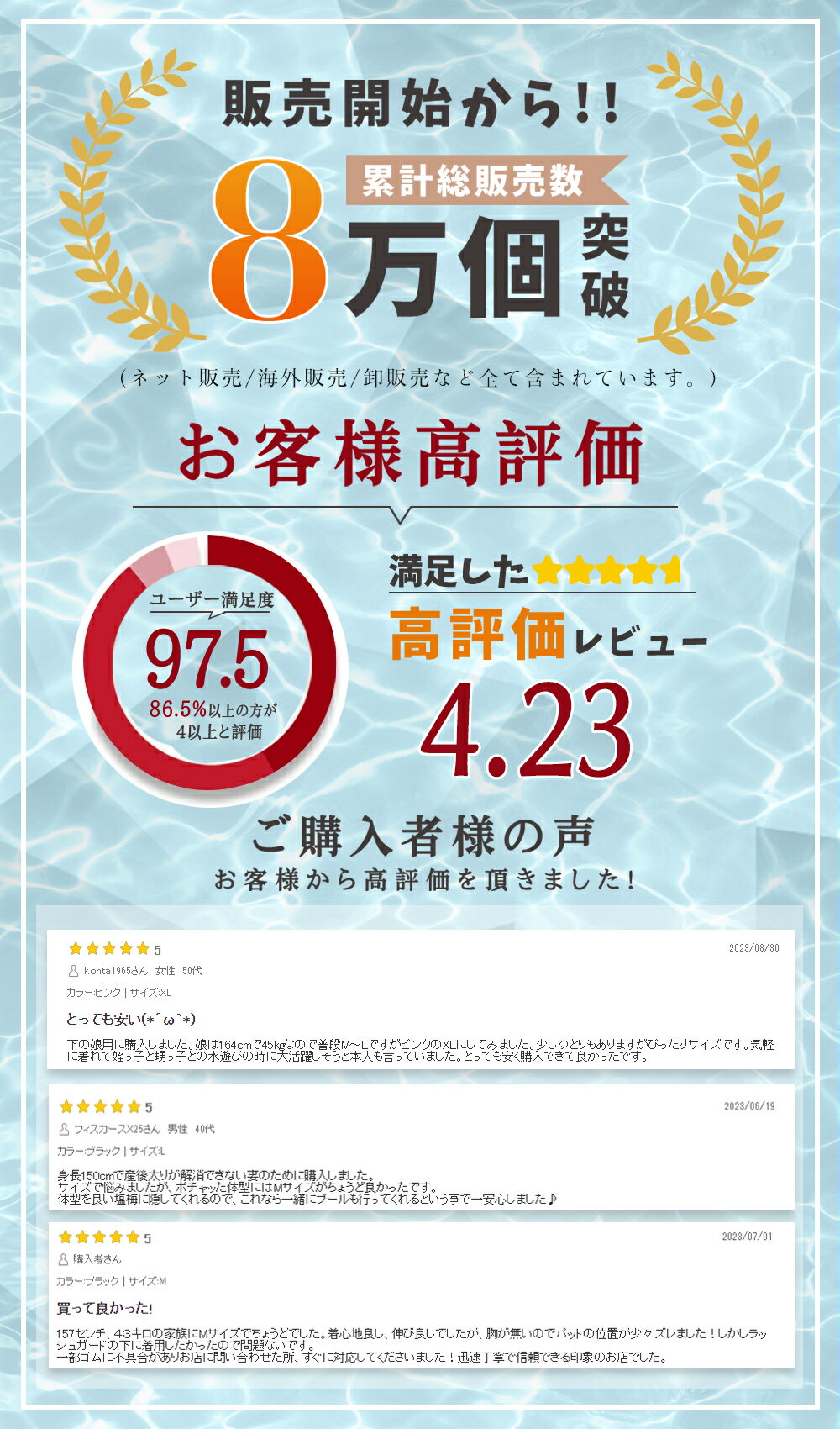 上の丈は少し短いかな?ちょうどかな?というくらいでしたが、下は大きくプールでズリ落ちました。