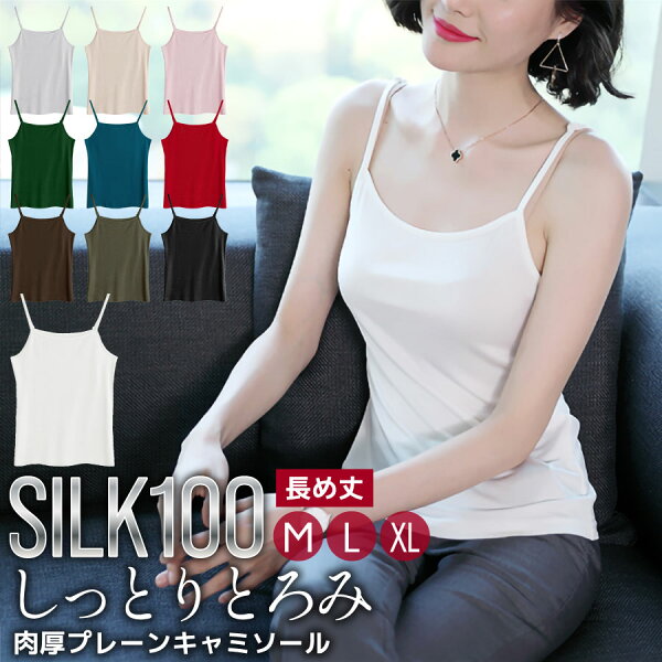 \スーパーセール目玉20%OFF/\リニューアル/ シルク キャミソール レディース シルク100% おしゃれ シンプル プレーン インナー アジャスター付き 肌着 冷えとり ストレッチ しっとり とろみ 敏感肌 低刺激 吸湿速乾 保湿 快適 10色 ma15 ctfa ss20