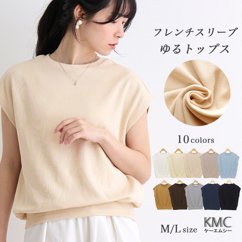 【SALE2890円→2456円】tシャツ レディース 半袖 カジュアル トップス 春夏 夏 カットソー ニットソー ゆったり おしゃれ 無地 フレンチスリーブ ノースリーブ 袖なし サマーニット 夏服 春服 ブラック 黒 ベージュ ホワイト 白 ブラウン アイボリー【メール便送料無料】