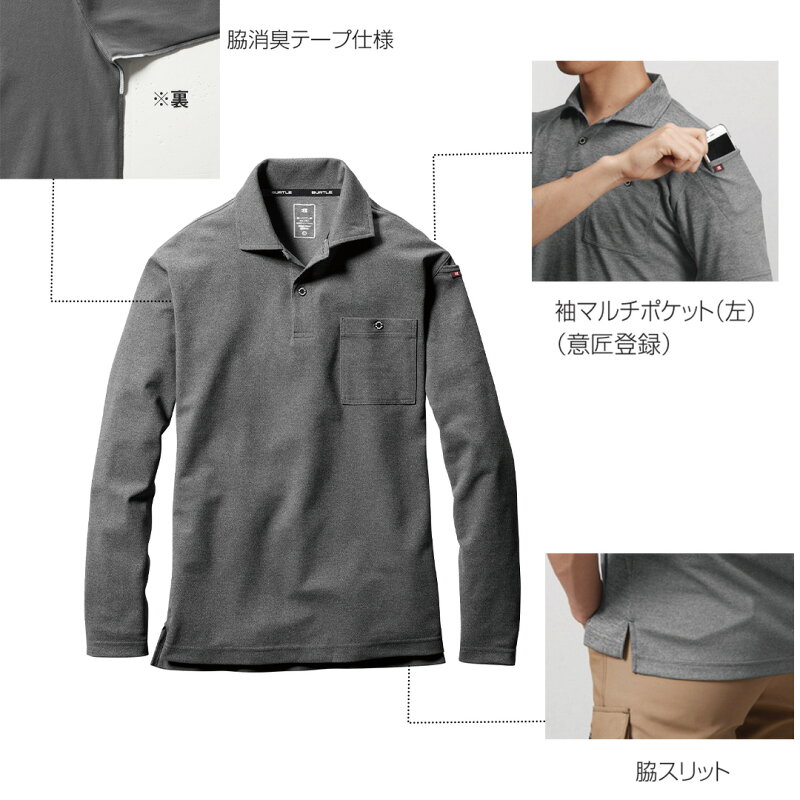 【即日出荷】【BURTLE】長袖ポロシャツ BURTLE バートル 春夏秋冬 オールシーズン アウトドア 作業用 665 吸汗速乾 UVカット ストレッチ素材 男性 女性 長袖 シャツ