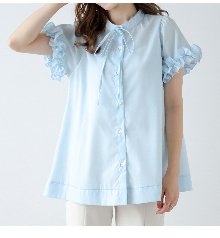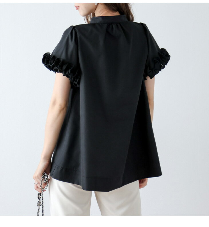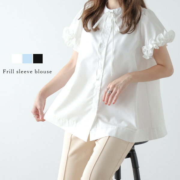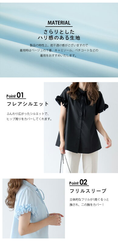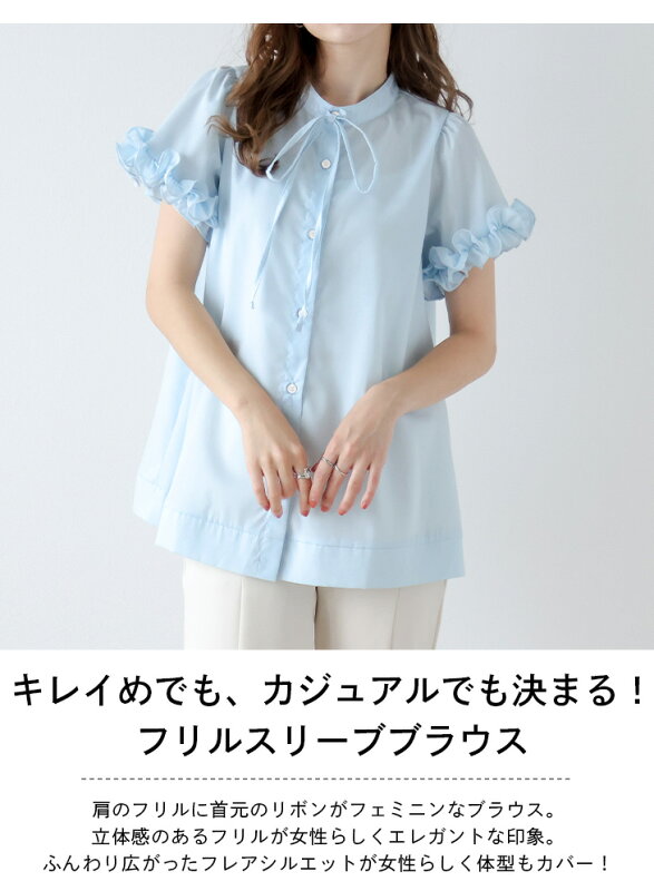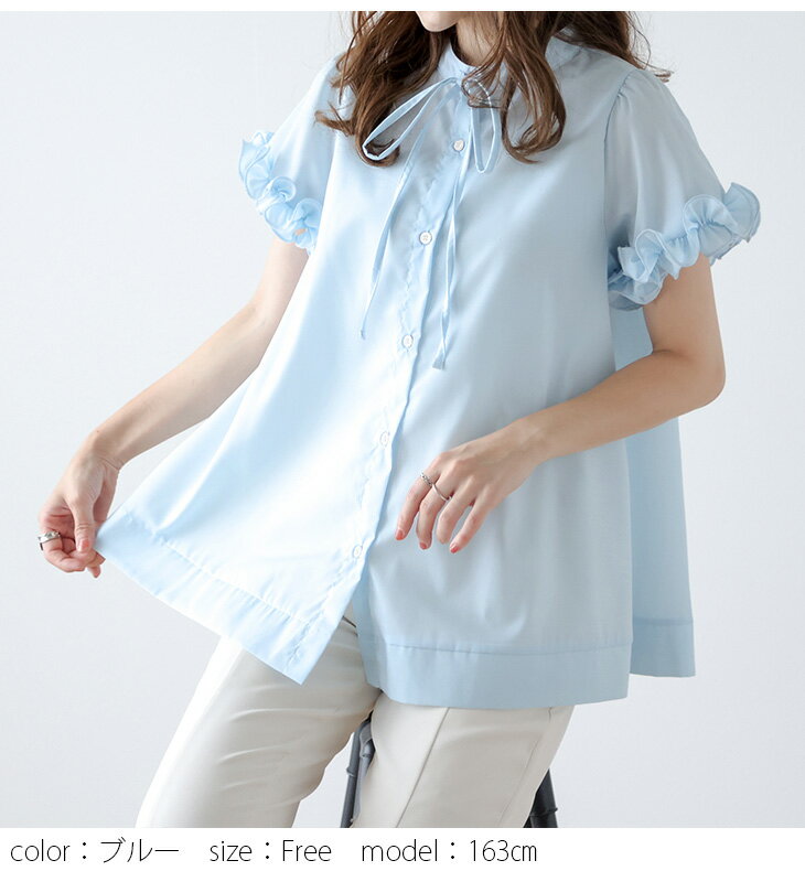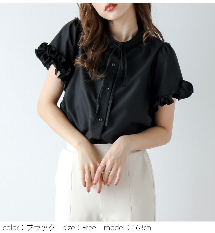 【半額クーポン対象】フリルスリーブブラウス フリル リボン 半袖 エレガント フレア トップス 二の腕カバー レディース おすすめ おしゃれ ブラック フリーサイズ メール便 2024春夏 【lstp303-345】【即納:1-5営業日】【送料無料】ユ込3