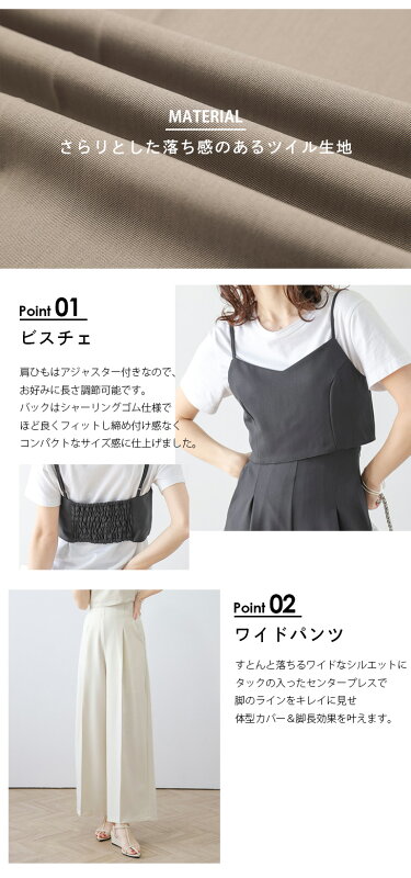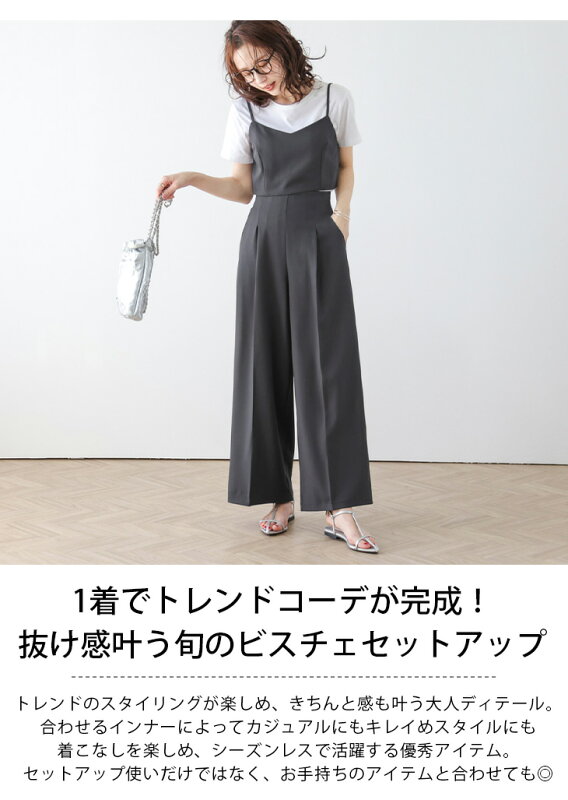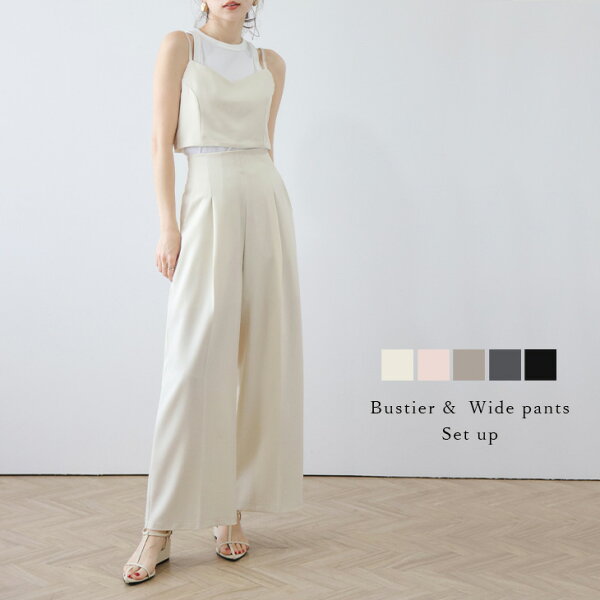 【半額クーポン対象】ビスチェ セットアップ 2点セット ワイドパンツ ハイウエスト センタープレス タック入り アジャスター付き レディース おすすめ おしゃれ メール便 2024春夏新作【lsrss24-228】【即納&予約:6月27日入荷予定順次発送】【送料無料】メ込3