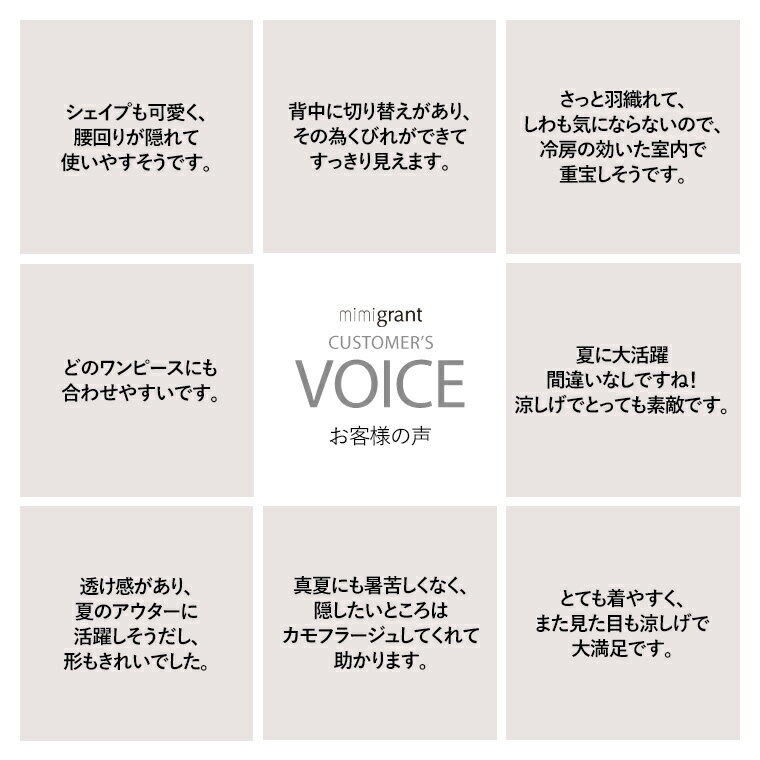 ノースリーブで二の腕は見せたくないけれど シルエットの綺麗な服を着たときに普通のカーディガンだと隠れてしまってもったいない、、、 って時に重宝します 黒を買いましたがスケてるので暑苦しく見えないです