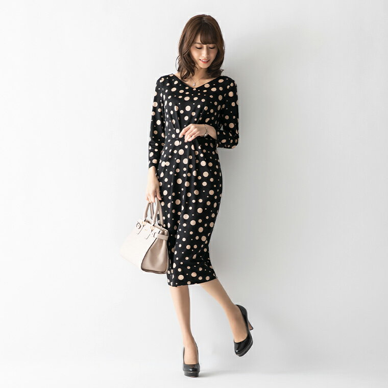 ワンピース:ケリー Xライン Vネック アフロディーテ ◆oprv1c-050007 きれいめ 30代 40代 50代 着やせ 大人 上品 エレガント 大きいサイズ トールサイズあり タイトワンピース ジャージー シンプル フォーマル オフィス ミモレ丈 膝丈 七分袖 春 秋冬