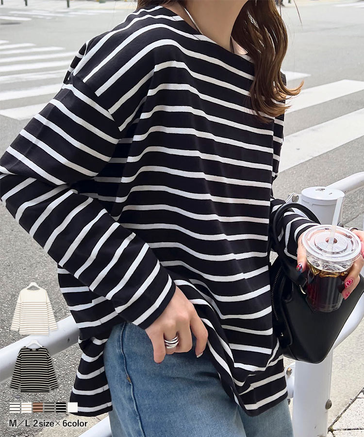 一枚でもインナーとしても使えそうな、ボーダートップスが欲しくて、ノーマルM カラー:ブラック×オフを購入!