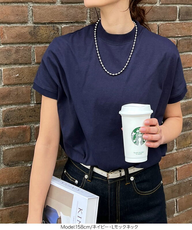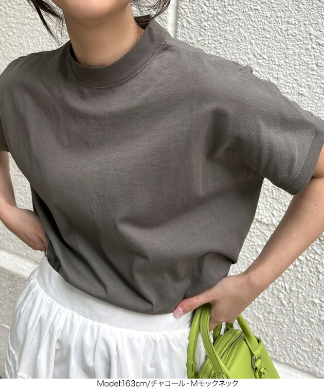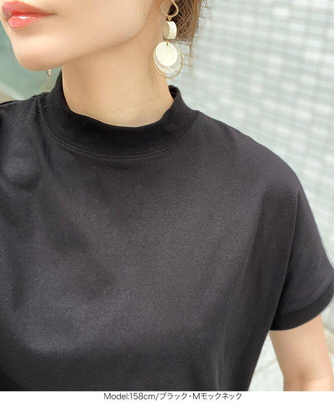 ≪ マラソンセール カットソー&羽織りFAIR sale ≫送料無料! 綿100% Tシャツ レディース [ M L LL ] モックネック クルーネック コットン100% トップス おしゃれ ハイネック 綿 ゆったり 体型カバー 夏 半袖 ティーシャツ ティシャツ 無地 [C4819]【送料無料】