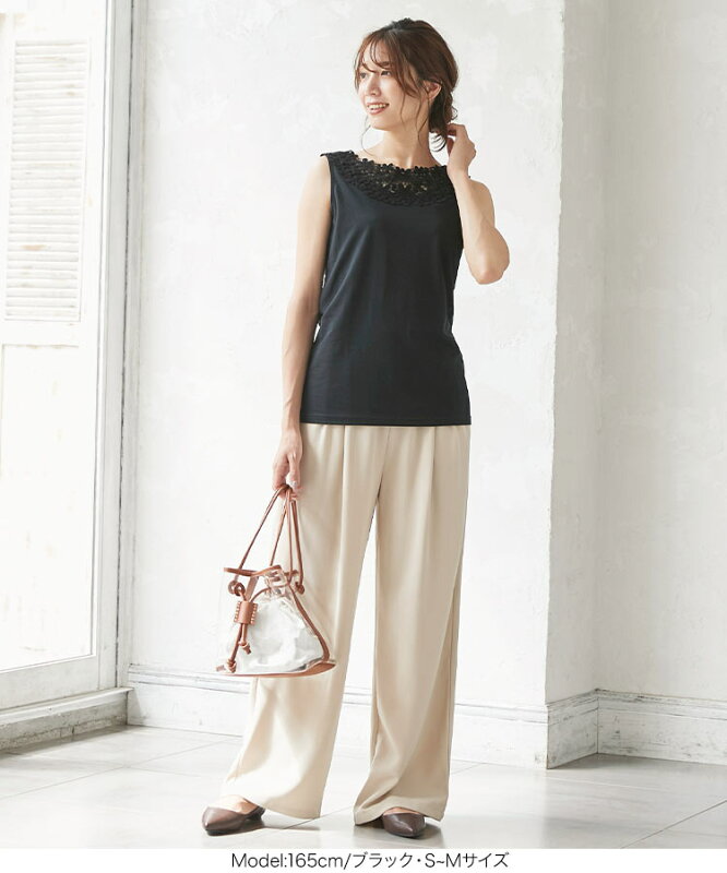 タンクトップなのでブラやキャミの紐も見えず安心。