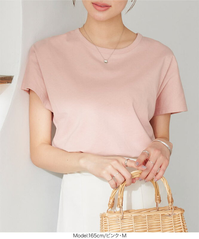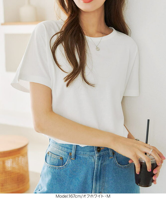 コットン100% シンプル Tシャツ レディース トップス クルーネック インナー ベーシック 半袖 丸首 綿100% S M L 30代 40代 50代 60代 大きいサイズ ぽっちゃり ゆったり 無地 ティーシャツ ティシャツ てぃーしゃつ Tしゃつ 夏 楽 カラーTシャツ [C5106] 【送料無料】