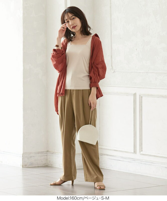 キャミソールだとどうしてもブラのストラップが見えてしまうのですが、このタンクトップは肩紐が幅広でちゃんとブラ紐を隠してくれます。