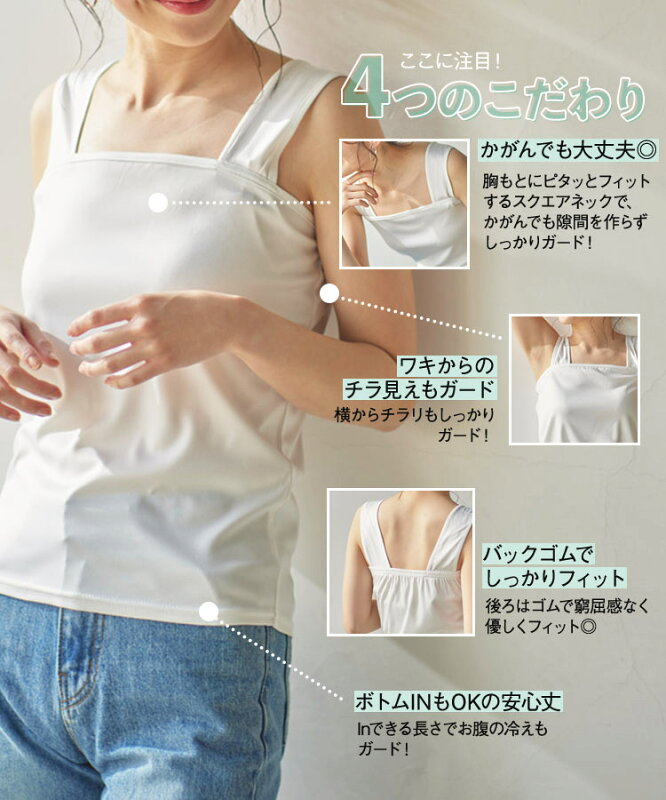インナー タンクトップ ブラ紐隠し レディース 夏 ペチコート 肌着 下着 ブラ紐 ペチタンクトップ シアー シャツ 白 トップス スクエアネック フィット ぴったり 伸びる 春 夏 [C5472] 【送料無料】